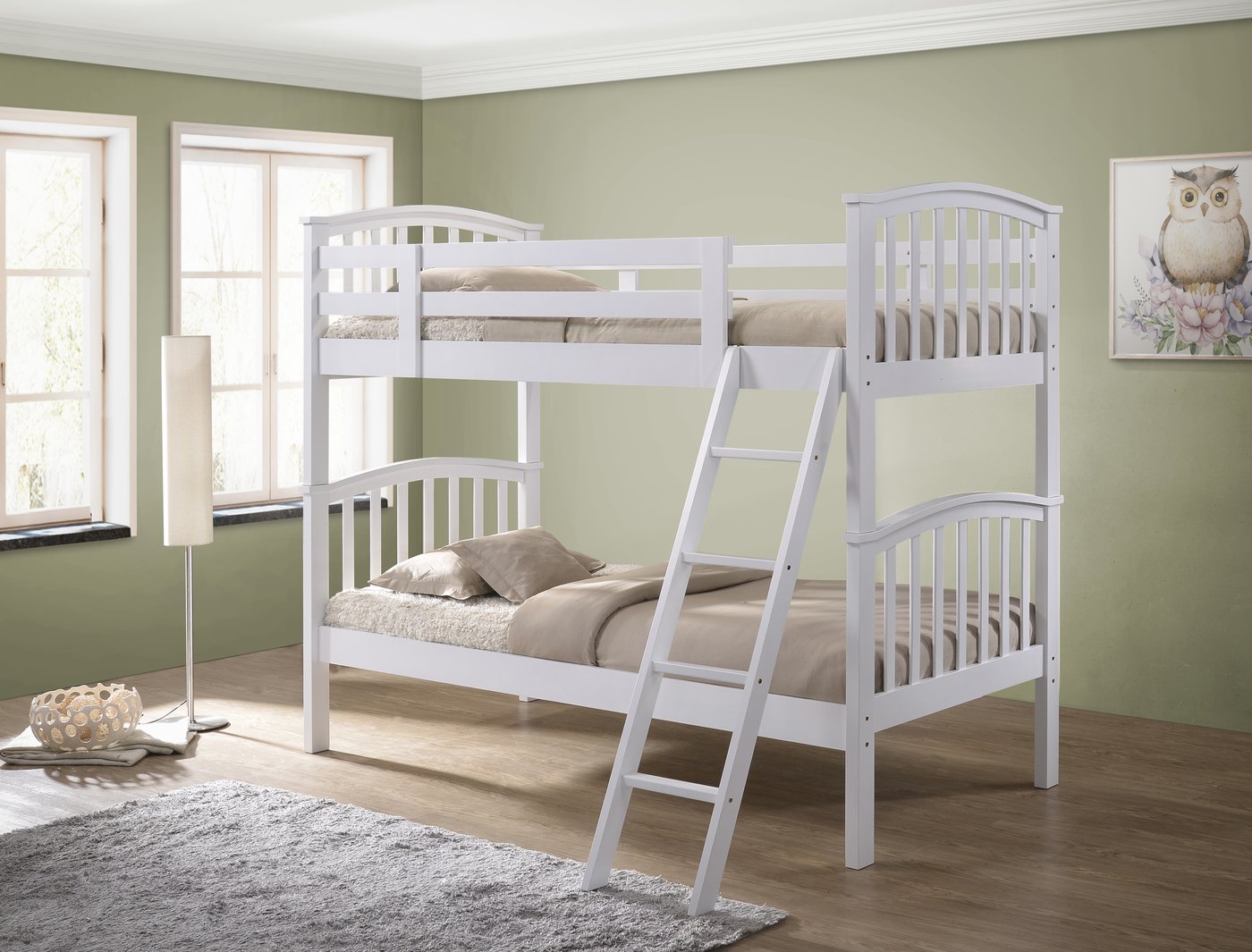 Our single bunk beds are finished in white or Natural, Whilst our triple bunks are finished in white, natural and grey. All come complete with mattresses.